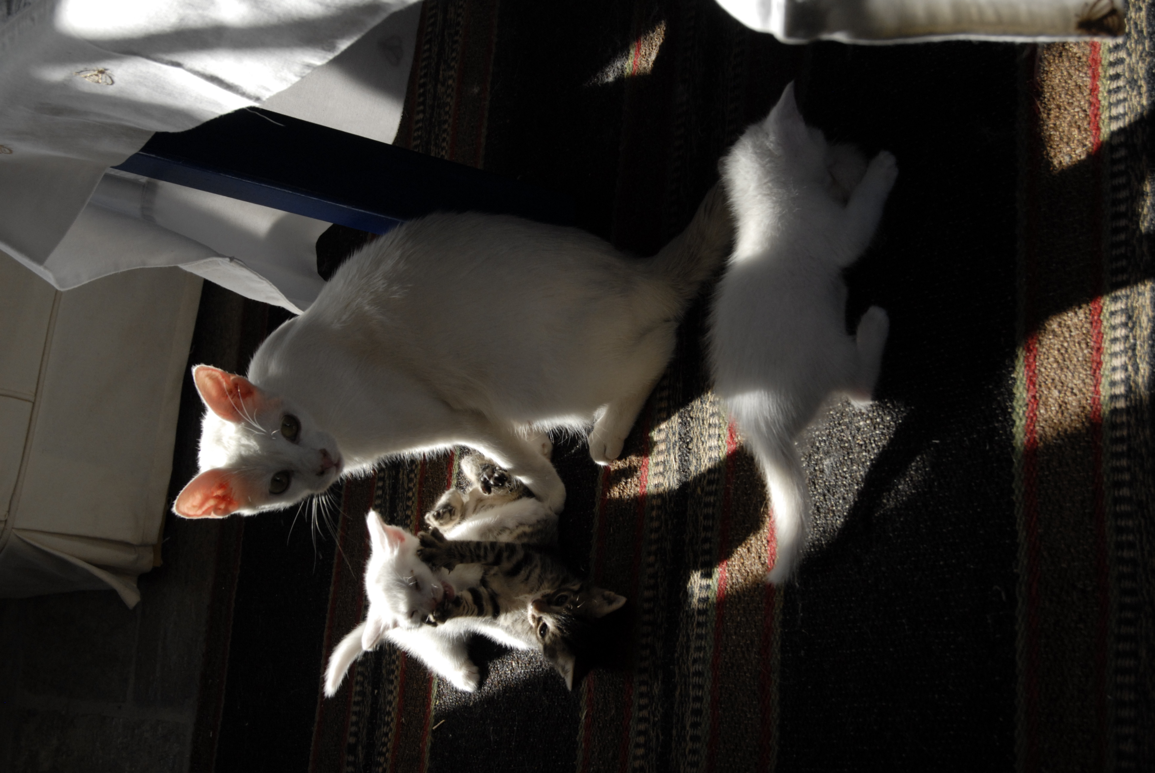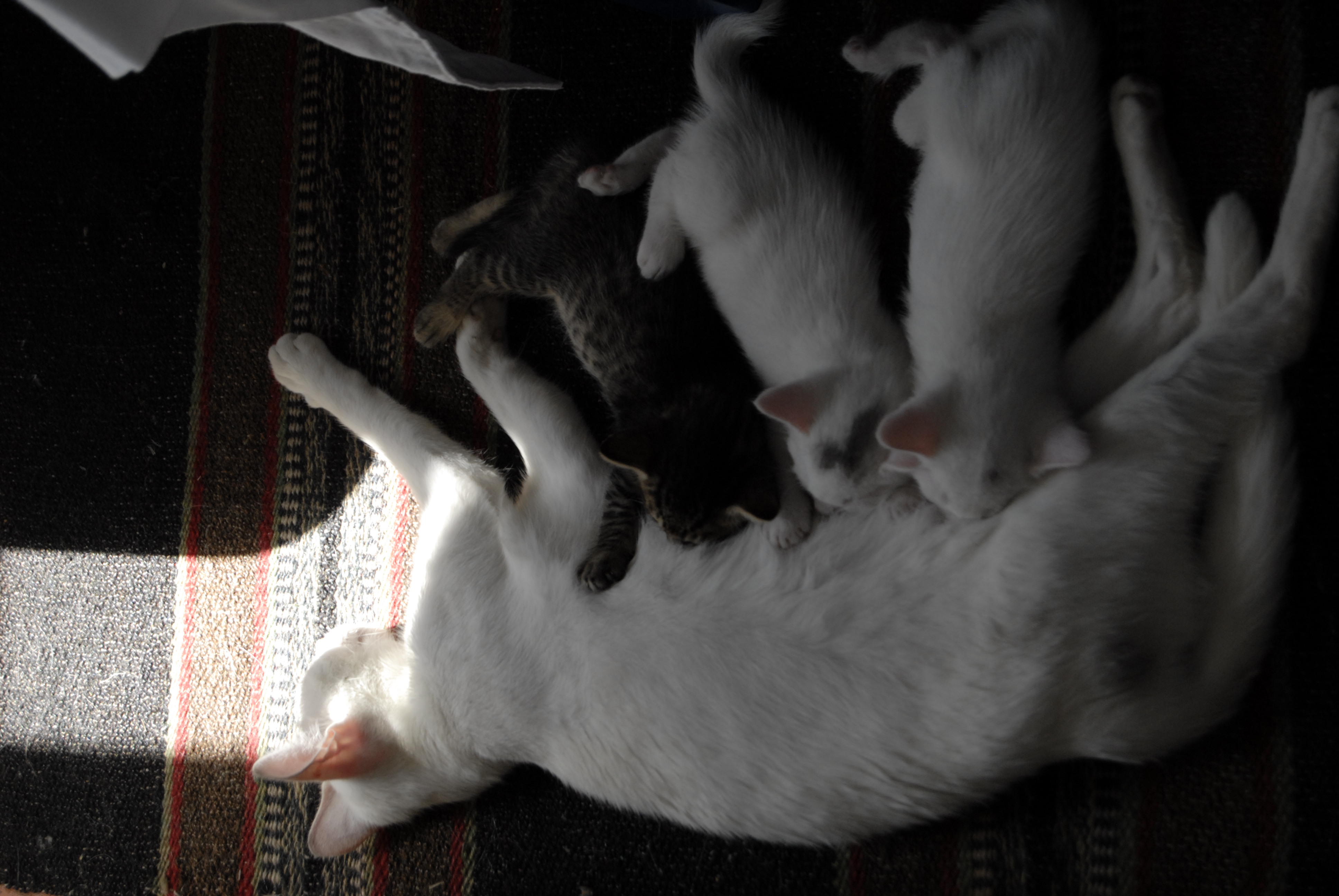 _DSC0856 _DSC0863Back to cats on my blog.   Piccolo, The voice that says I love you, love her. Piccolo is an Egyptian cat. She was white and tall.. she spoke to me, she looked me in my eyes and said, “ love her, I give her to you as a present.. love her”/ When I listen to inner voices, deeply , at peace, in nature, with spirit animals or animals they say “I love you. Love HER deeply”. That’s all. Piccolo was a white Greek cat. White cats are sometimes deaf and mute and piccolo was mute. When I arrived in my wife’s house, (then my girlfriend’s house), Piccolo was there. My girlfriend loved her and she was an elegant Egyptian cat, tall, long legged thin. She was also fragile as a pure white Greek cat, suseptable to many diseases since they are wild, don’t stay in the house, go in villages with many cats, etc. Piccolo got pregnant and one day had kittens in our bed as we woke up. After that, we had her fixed. One day after the surgery, she looked at us, said, Don’t ever do that again, and walked down the hill to town, We never saw her again. We asked friends to find her. One man brought us to a white cat with kittens, We said, Piccolo was fixed, it can’t be her, He said, Not a good doctor, it’s her. A little girl told us I found Piccolo, we asked all white? she said peirpou, about, the cat was black.